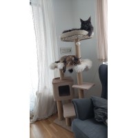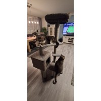 Unsere Samtpfoten sind hin und weg, dieser Kratzbaum ist einfach toll. Er ist nicht so haarig vom Stoff her und das finden unsere 2 so toll. Es ist viel Platz zum Klettern, Kratzen , verstecken und natürlich kuscheln vorhanden.
