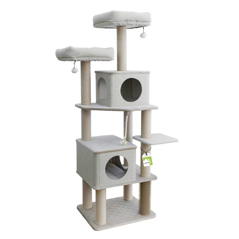 Für entspannte Momente steht Deiner Katze eine gemütliche Kuschelhöhle zur Verfügung, ideal zum Zurückziehen und Ausruhen. Auf den bequemen Liegeplattformen kann Deine Katze erhöht liegen und ihre Umgebung beobachten.