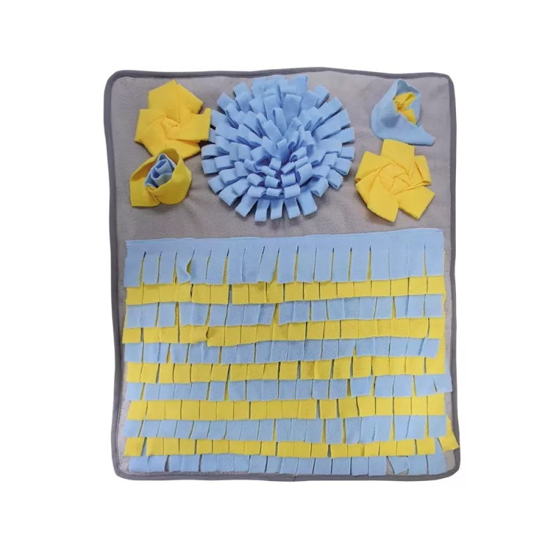 Die Schnüffelmatte "Garden" von Nobby bietet viele Versteckmöglichkeiten für das Futter, das der Hund oder die Katze mit der Schnauze und den Pfoten herausarbeiten kann. Die Matte besteht aus Fleece (100% Polyester), ist rutschfest und kann bei 30 Grad gewaschen werden. Durch die Schnüffelmatte wird das Tier geistig gefordert und beschäftigt. Es kann dazu beitragen, dass der Hund oder die Katze ausgeglichener ist.